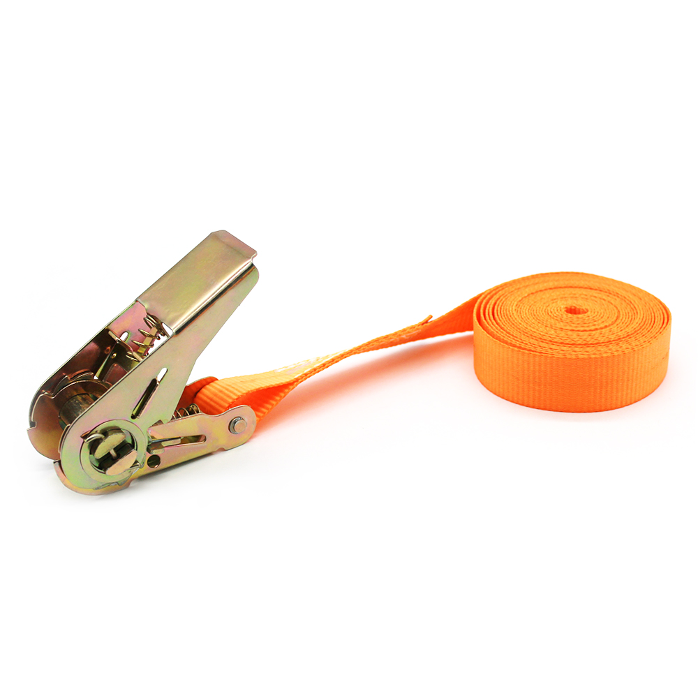 This ratcheting tie down strap is perfect for home or commercial use! Featuring industrial grade nylon webbing, each strap is D.O.T. and C.H.P rated, meaning that you never have to worry about the stability of your items while they are tied down. The heat treated, zinc coated steel hooks are flat, and easily slide into place to secure the ratchet. The wide grip molded handle fits comfortably in your hand for optimal performance, and the ratchet features an easy release mechanism to easily release the tension on the strap. The strap itself is 1 inch x 13 feet (2.5cm x 4m) and features a strength of 2,200 pounds with a load limit of 1,700 pounds. This ratcheting tie down strap will provide you with the best cargo solution for your needs in terms of quality and value!