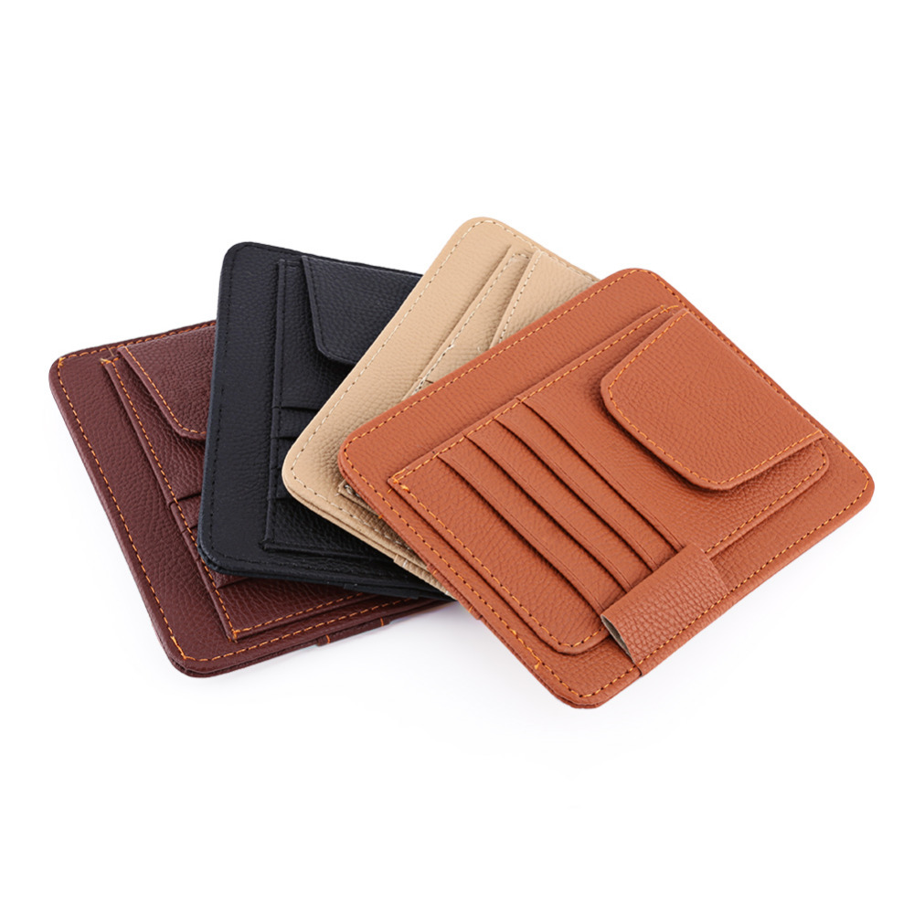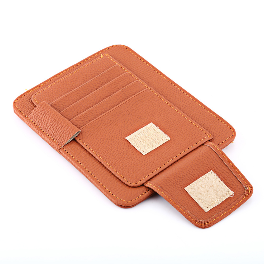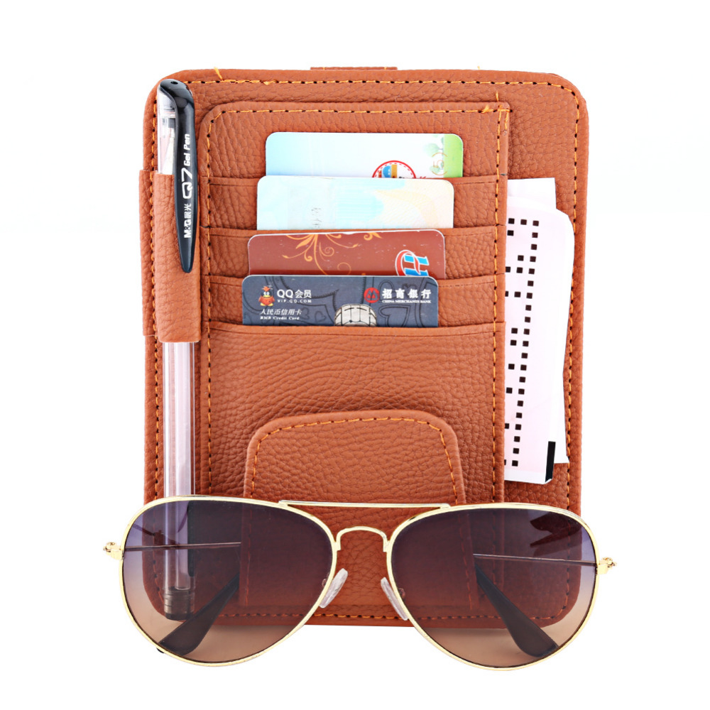 This is brand new car sun visor storage holder, which made of premium quality PU leather material, dirt-resistant and can be used for a long time. It is small but multifuntional, can be used to storage pen, card, bill, glasses and so on, saving space and won't affect the view in front. There are 4 colors for your choices, it's not only a perfect decoration for your car interior, but also a wonderful gift. What are your waiting for?